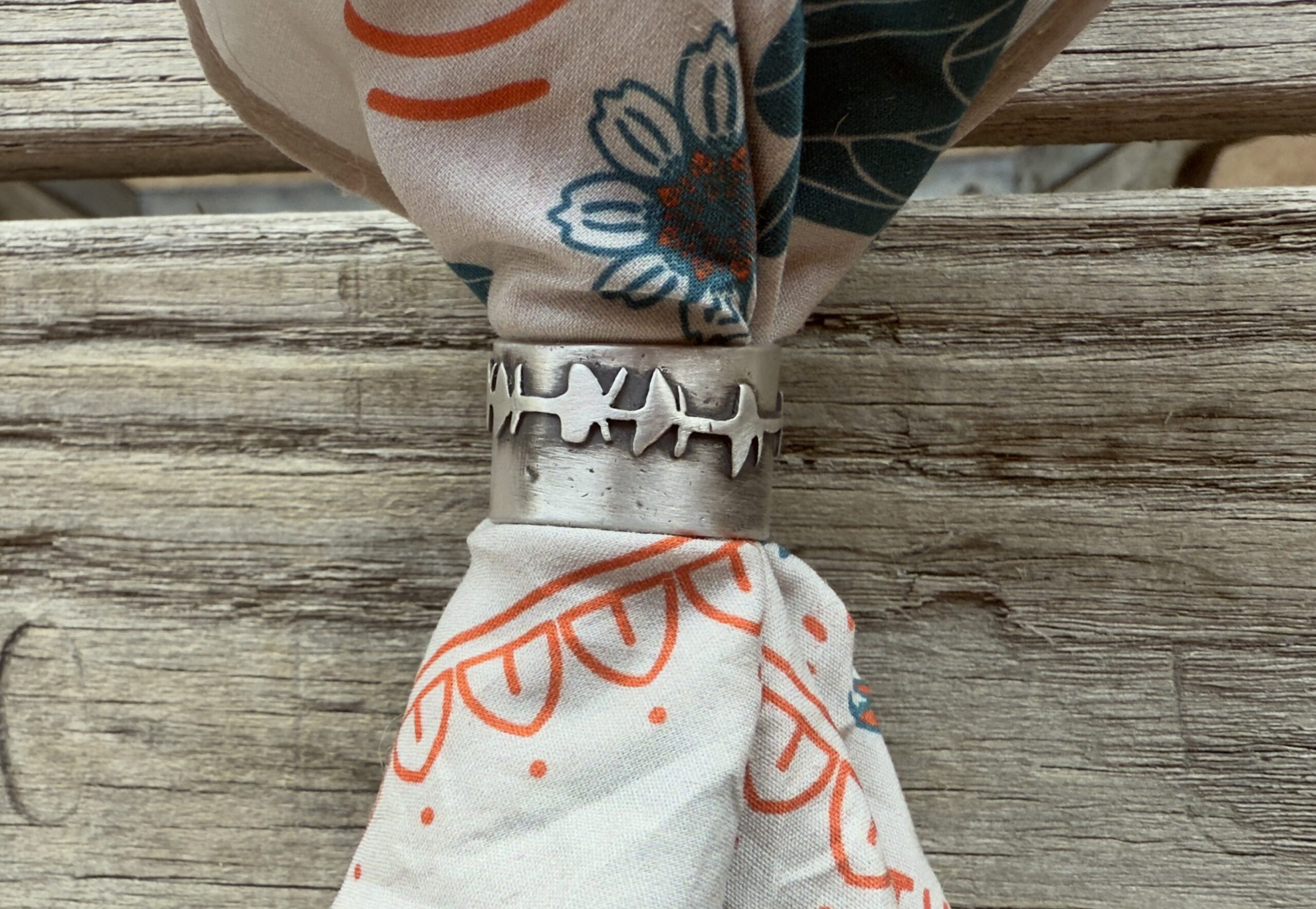 My husk rings are inspired by wild Colorado flowers in the winter that have turned into husks. They are rugged, lovely and a little brutal. These are distressed with a silver patina with multiple layers of silver to make them bold and substantial. This piece also has a small copper disk on the band to represent a blood moon. Please note these bands are wider and have a snug fit, so you can go up a 1/2 size for comfort.