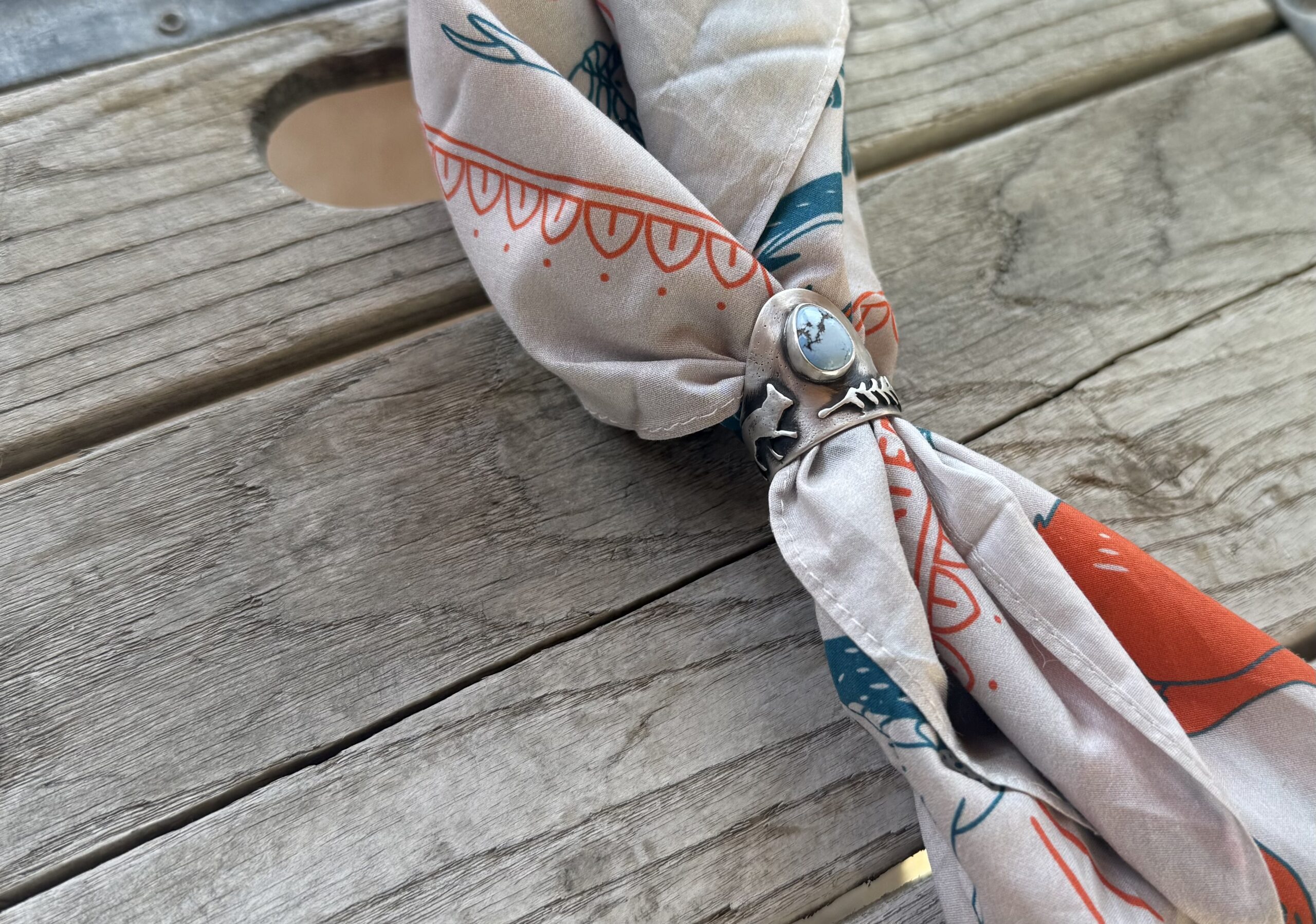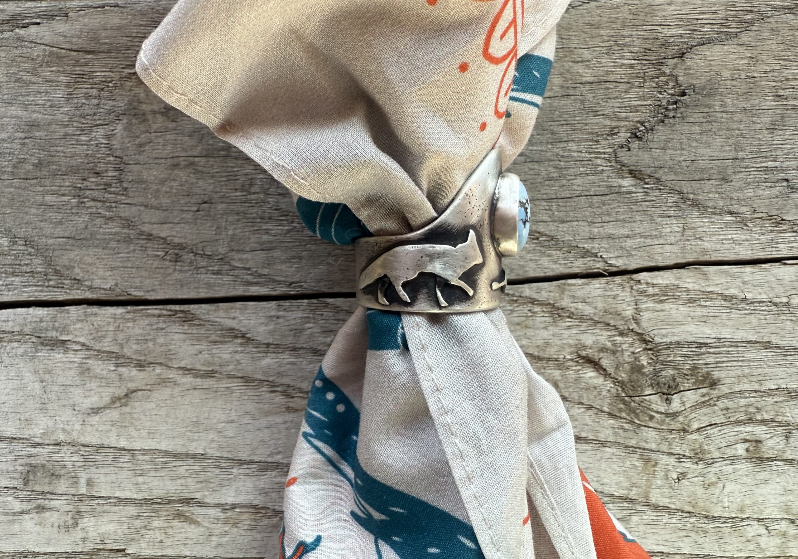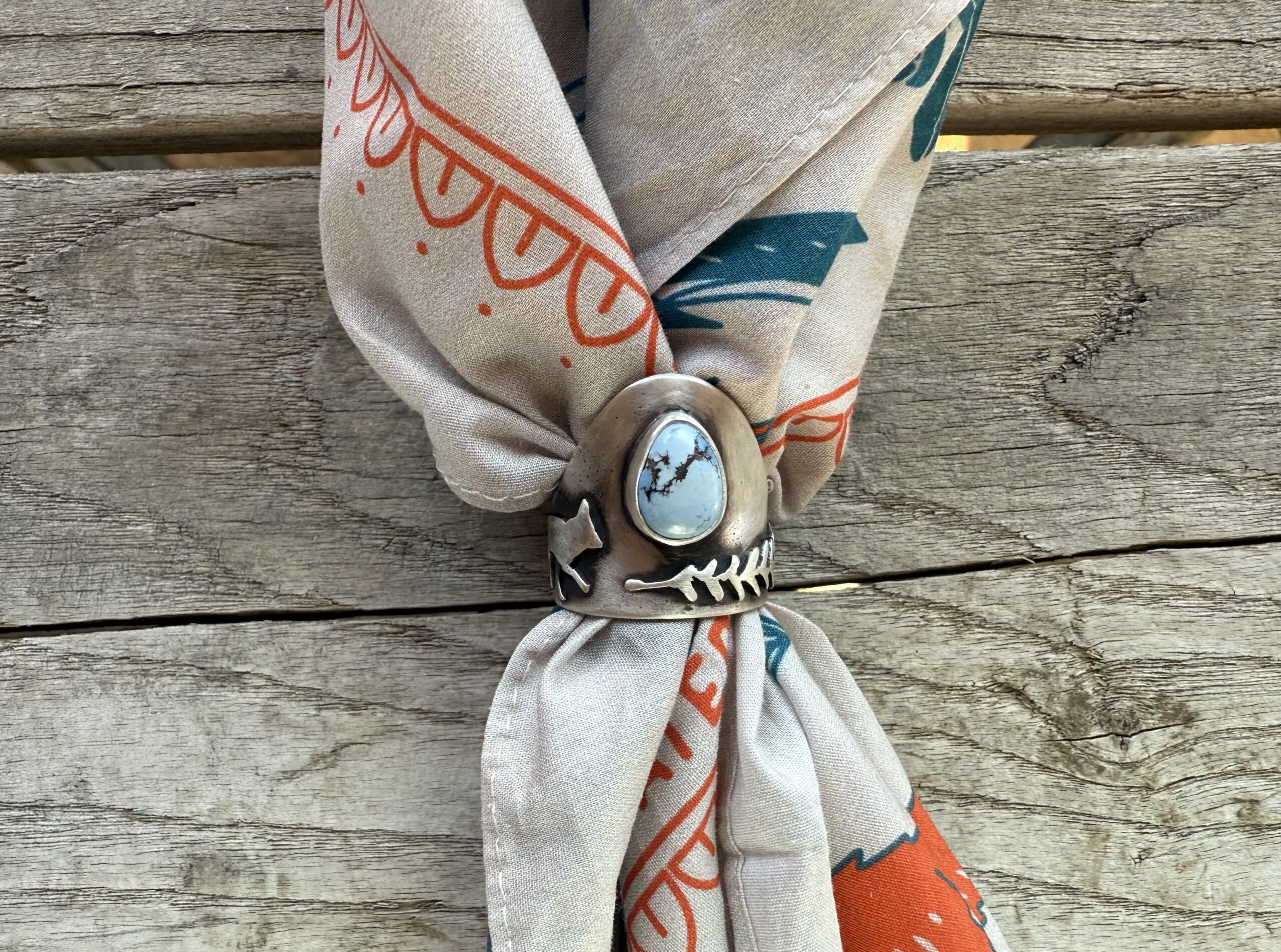 My floral rings are inspired by wild Colorado leaves and flowers in the winter that have turned into husks. They are rugged, lovely and a little brutal. These are distressed with a silver patina with multiple layers of silver to make them bold and substantial. This piece has a high grade piece of Blue Moon Turquoise cut by a lapidary artist in the US. It also has a small silver fox on band to represent the winter in the Colorado backcountry. Please note these bands are wider and have a snug fit, so you can go up a 1/2 size for comfort. This band is 21mm tall in the front and 9mm in the back.